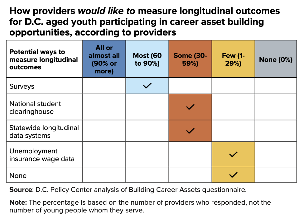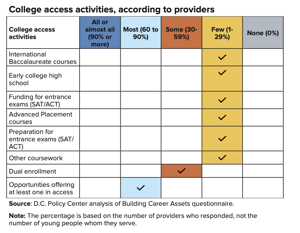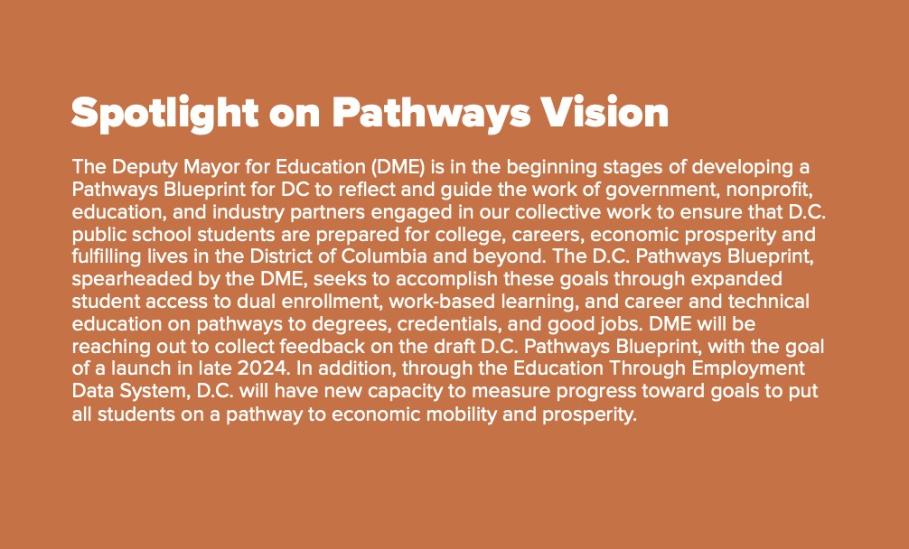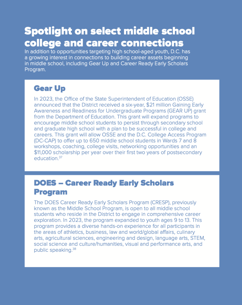 D.C. has many opportunities for high school age youth to connect to college and career. Despite this, little has been publicly reported about these opportunities across all providers, and there is limited information available surrounding outcomes of these programs.