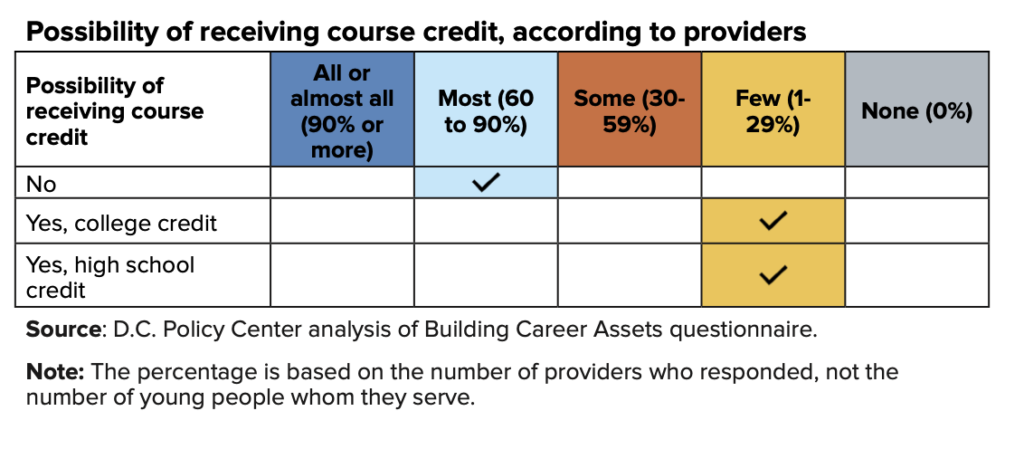 Even with this potential to improve early career outcomes, little has been publicly reported about how D.C.’s high school-aged youth can build career assets before graduation, although a lot of career asset building opportunities do exist. This report looks at opportunities across four types of providers: D.C. government agencies, nonprofits, Local Education Agencies (LEAs) serving high school students, and LEAs serving adult and alternative learners with a majority under age 25.
