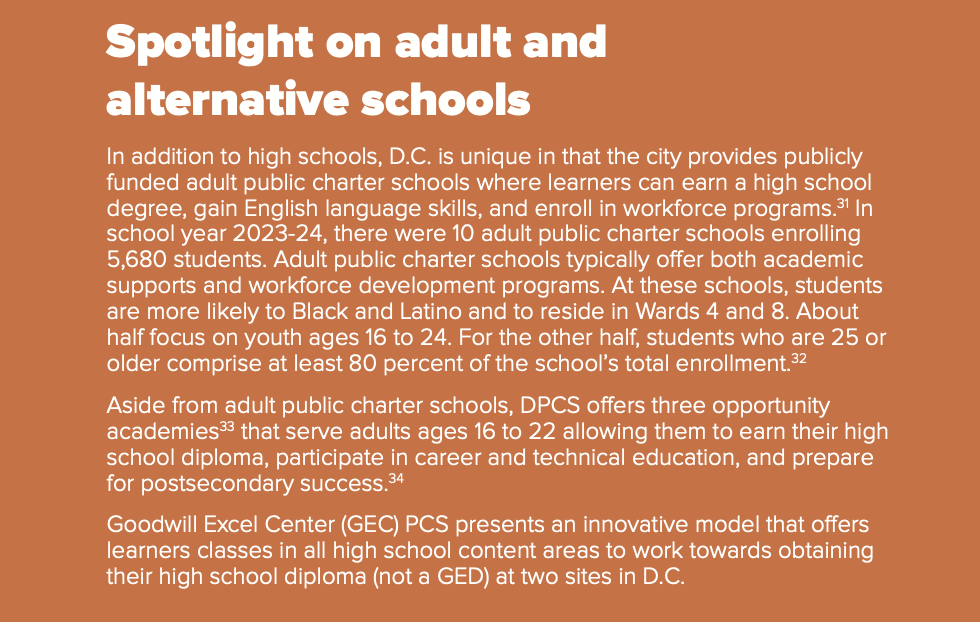 - Coffin, C. and Mason, H. 2024. State of D.C. Schools, 2022-23: Challenges to pandemic recovery in a new normal. D.C. Policy Center. Retrieved from https://www.dcpolicycenter.org/publications/state-of-dc-schools-2022-23/