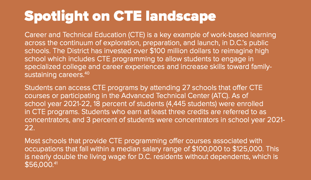 - CityWorks DC. 2023. “DC’s Work-Based Learning Framework.”CityWorks DC. Retrieved from: https://www.cityworksdc.org/toolkit