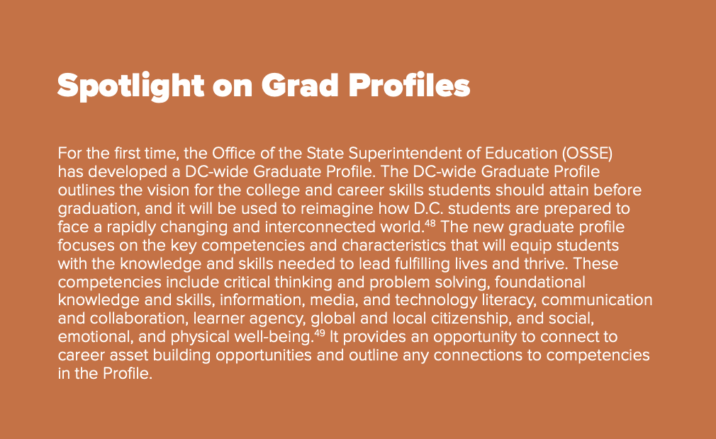 - Office of the State Superintendent of Education (OSSE). 2024. “DC-Wide Graduate Profile.” OSSE. Retrieved from https://osse.dc.gov/sites/default/files/dc/sites/osse/page_content/attachments/OSSE-DCWideGradProfile_comprehensive.V4.pdf