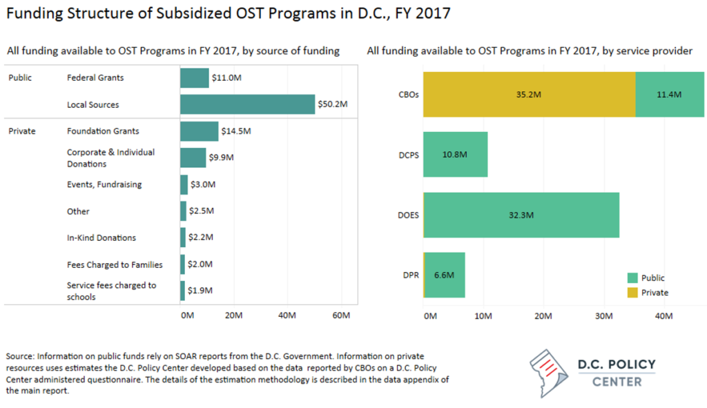 Subsidized OST programs in D.C.—whether operated by schools, specific government agencies, or by community-based providers—rely on both public and private funds to support operations.